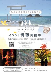 いとしまリンクは糸島のイベント情報を無料で掲載・告知できるサービスです。関われるイベント情報の提供、イベント運営者にいとしまリンクのことをお伝えいただくこと、サービスのチラシやカードを置かせていただくことが、利用者を増やし、より有意義な仕組みにしていくための心強いご支援になります。
