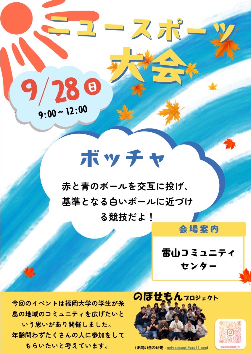 福岡大学の学生が糸島市をより活性化させるきっかけをつくりたい!幅広い年代の方が関われるイベントをつくりたい!という想いからニュースポーツ大会を開催します!!