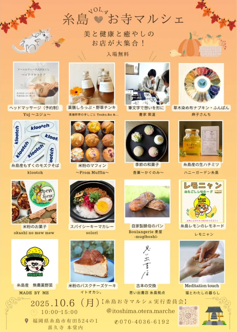 今回も、オーガニックや無添加、心のこもった一品やサービスが糸島のお寺に集まります。