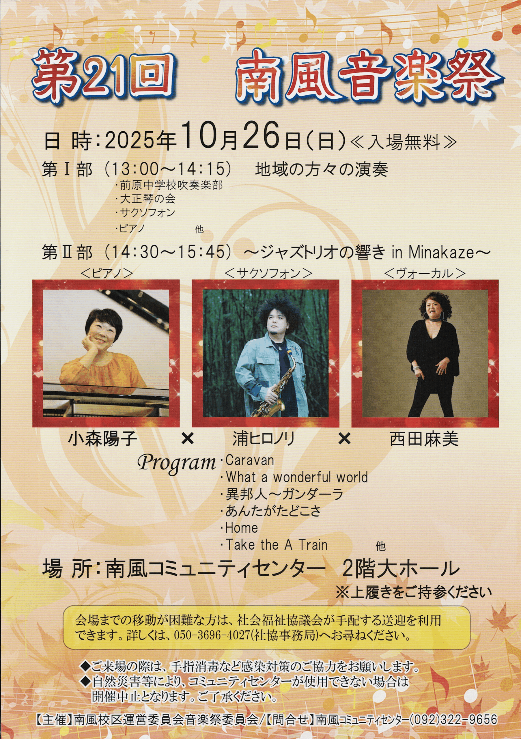 主催は、南風校区運営委員会(音楽祭委員会)です。