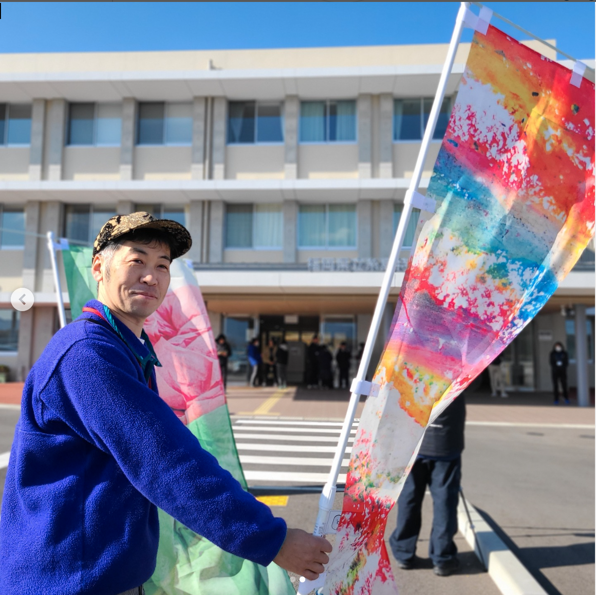 福岡県立糸島特別支援学校 の子どもたちが描いた絵から生まれた「ゆいの旗」。