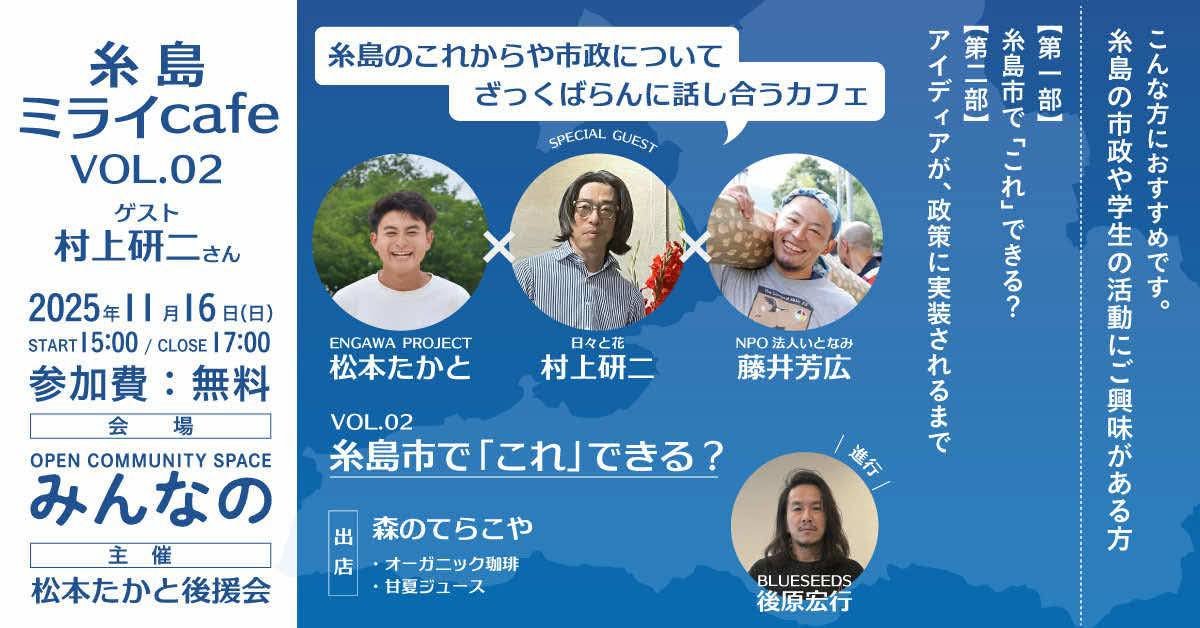 糸島のこれからや市政についてざっくばらんに話し合うカフェを開催します!(Vol.2)