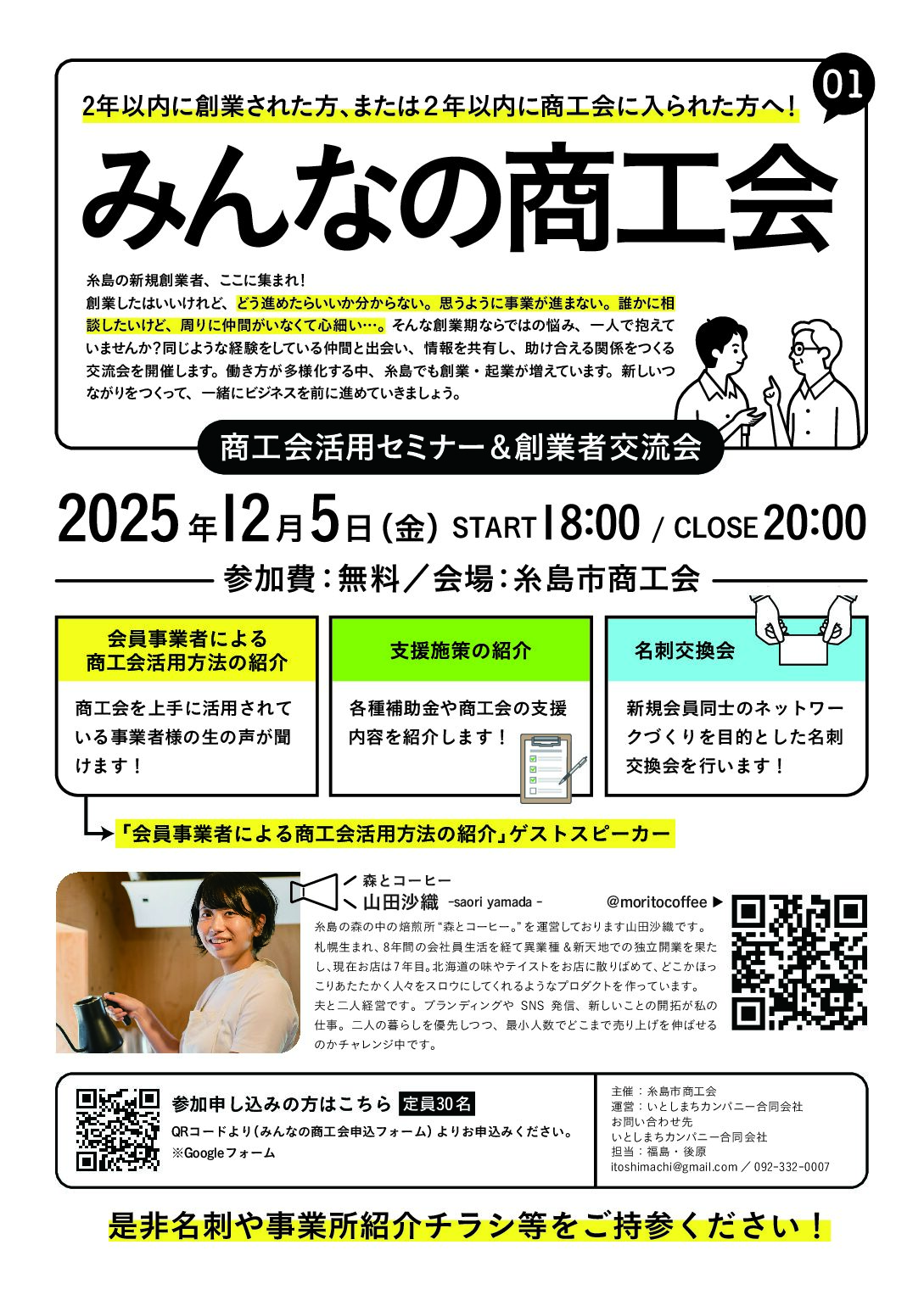 詳細・参加申し込みは下記の糸島市商工会ホームページより