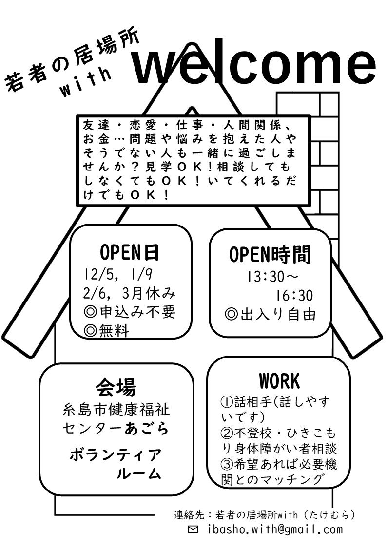 あごらでの居場所は、2月までチラシに掲載している日に実施しています。