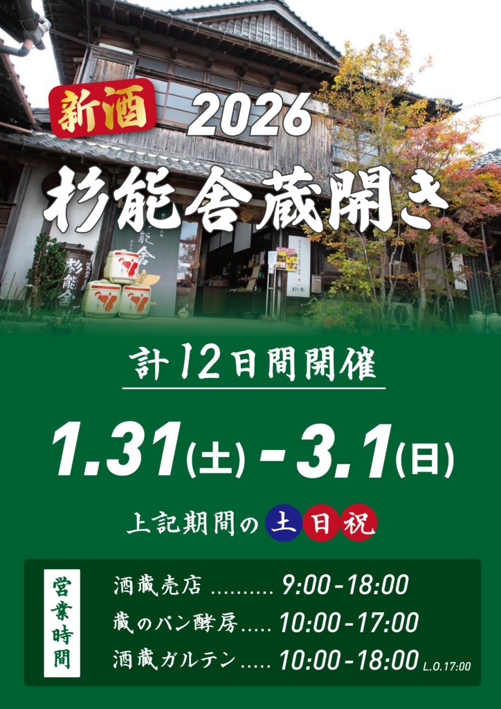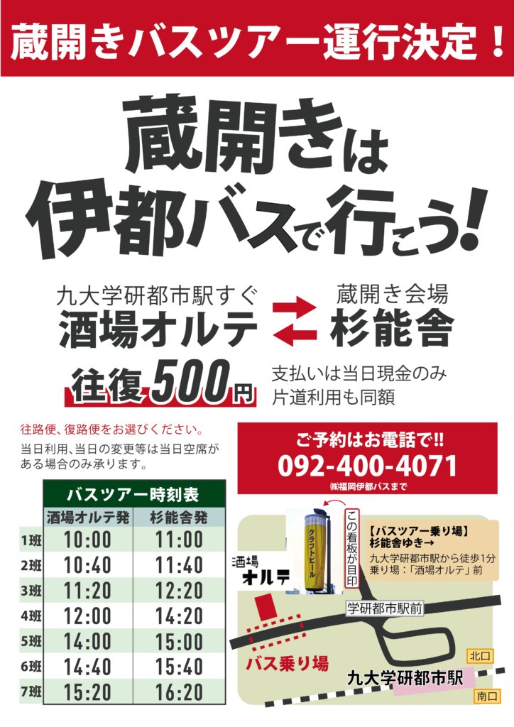 今年の蔵開きは杉能舎直行のバスが運行いたします。ぜひご利用ください。