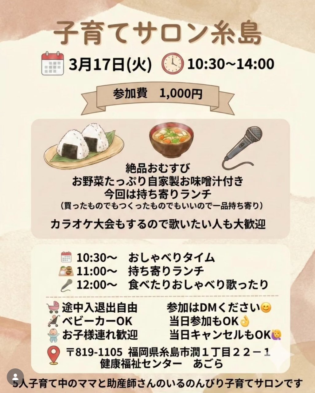 子育てサロン糸島 持ち寄りランチ&カラオケ大会✨
