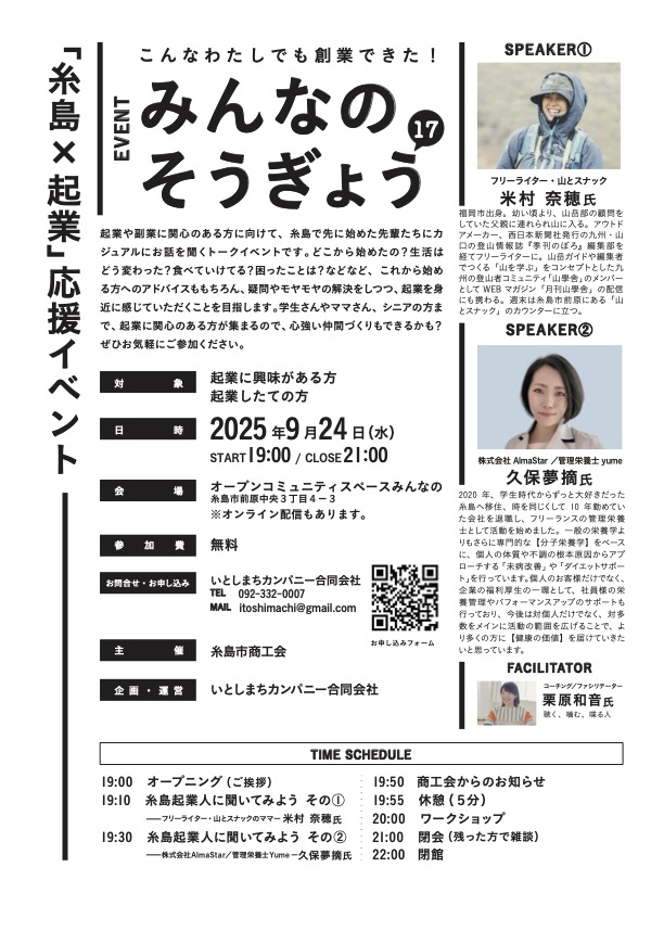 「糸島x起業」応援イベント みんなのそうぎょう17〜糸島起業人に聞いてみよう♪
